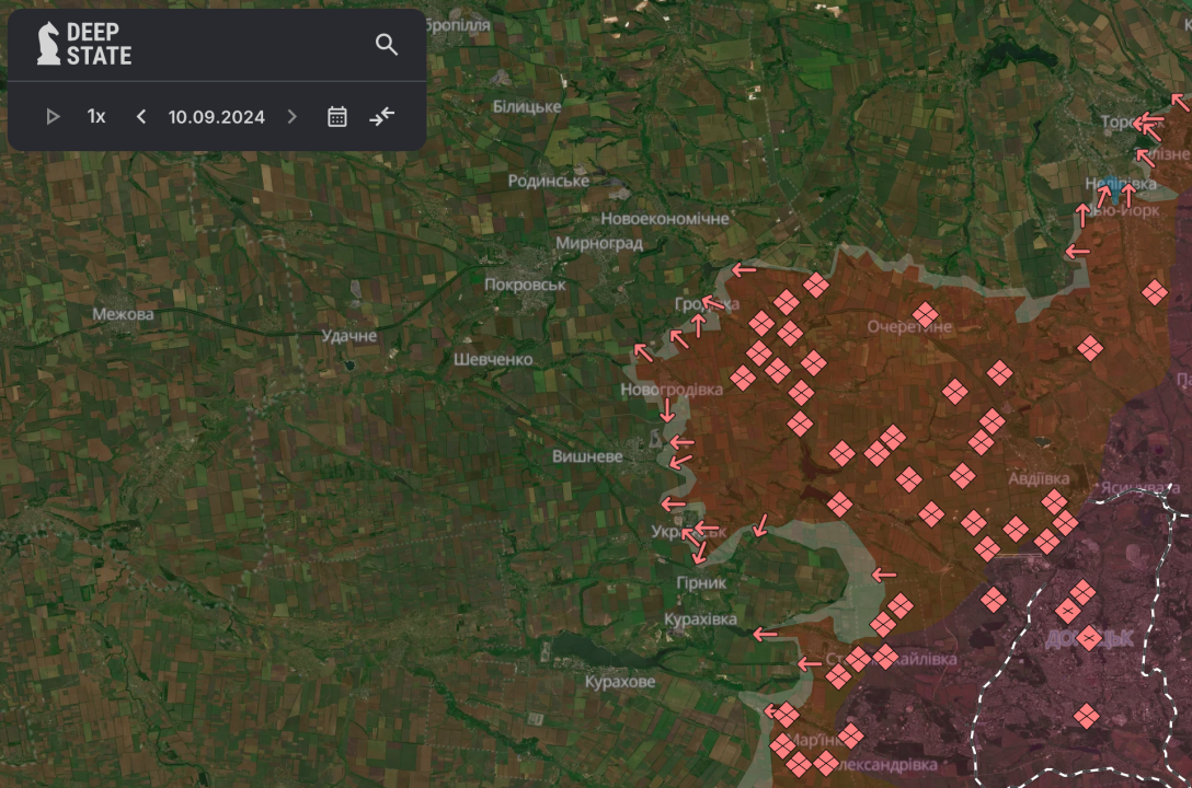 Нагадаємо, 10 вересня повідомлялося, що ЗС РФ частково взяли Покровськ під вогневий контроль. За словами співзасновника DeepState Романа Погорілого, активізація бойових дій на фронті не припиняється. Противник постійно перегруповує сили і залучає резерви, щоб підійти ближче до бажаного міста Донбасу.
