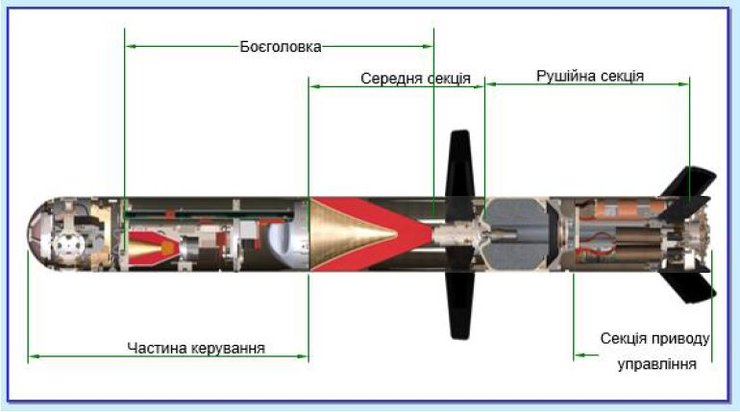 Через те, що ракета виявилась небоєздатною, було ухвалено рішення зняти з нею бойову частину, яка містить про дві кумулятивні бойові частини із загальною вагою 8,4 кг.