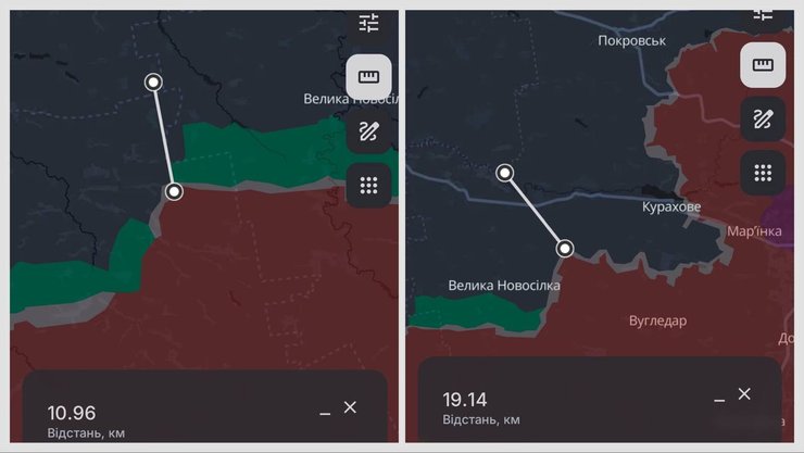 Російські війська знаходяться менш ніж за 20 кілометрів від кордонів Дніпропетровської області. Противник продовжує просуватися у напрямку траси на Курахове. Про це написав у своєму Telegram блогер і волонтер Сергій Стерненко, коментуючи поточну ситуацію на фронті.