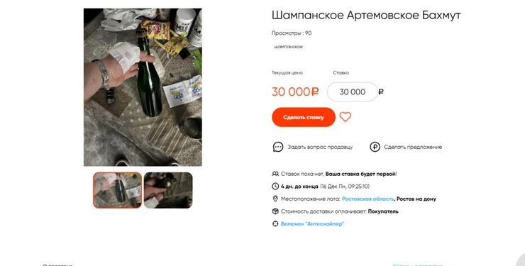 Оголошення про продаж українського шампанського з'явилося на сайті 30 квітня 2024 року. Пляшку ігристого вина окупанти оцінили в 30 тисяч рублів (11,666 грн).
