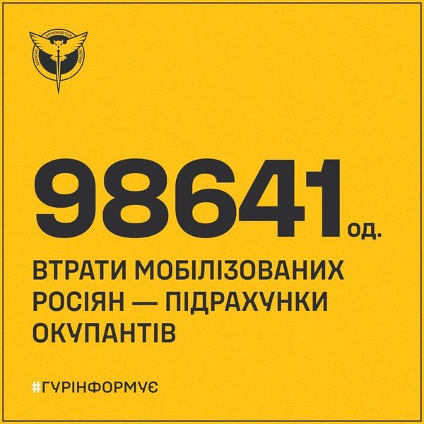 З 21 вересня 2022 року по 31 жовтня 2024 року армія Росії втратила 98 641 мобілізованого солдата. Найбільших втрат зазнало угруповання військ "Центр" — 21 710 осіб. Про це 19 грудня повідомила пресслужба Головного управління розвідки Міноборони України.