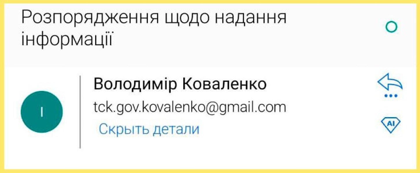 Він звернув увагу, що такі листи мають надходити з державного домену gov.ua. Листи з домену gmail.com нардеп порадив одразу видаляти.