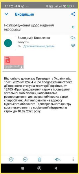 За словами Олександра Федієнка, листи від ТЦК мають надходити з державного домену gov.ua, всі інші варто відразу видаляти.