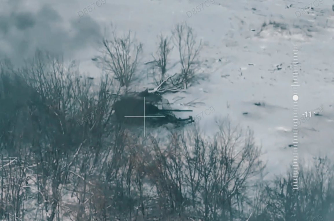Частина російської техніки підірвалася на мінах. Безпілотники уразили іншу і також переслідували піхоту, що спішилася. Один контужений російський військовий вистрибнув зі своєї пошкодженої машини, пройшов кілька кроків по снігу, впав на спину — і потім його уразив дрон.