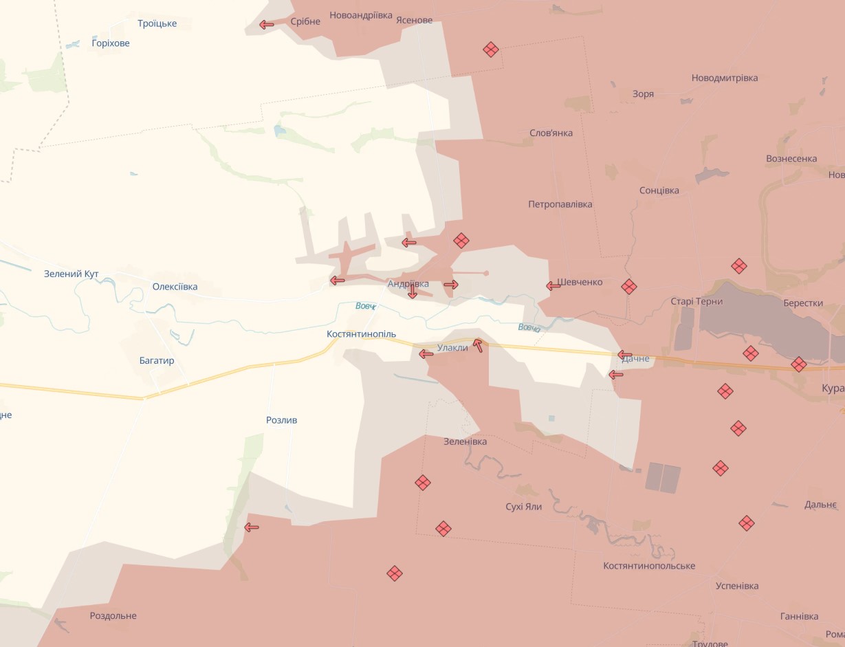 Водночас на південь від Покровська в районі Улакли противник розширив зону контролю в бік Костянтинополя і дороги, що проходить через цей населений пункт. Також зафіксовано незначне просування ЗС РФ на захід від Андріївки вздовж річки Вовча.