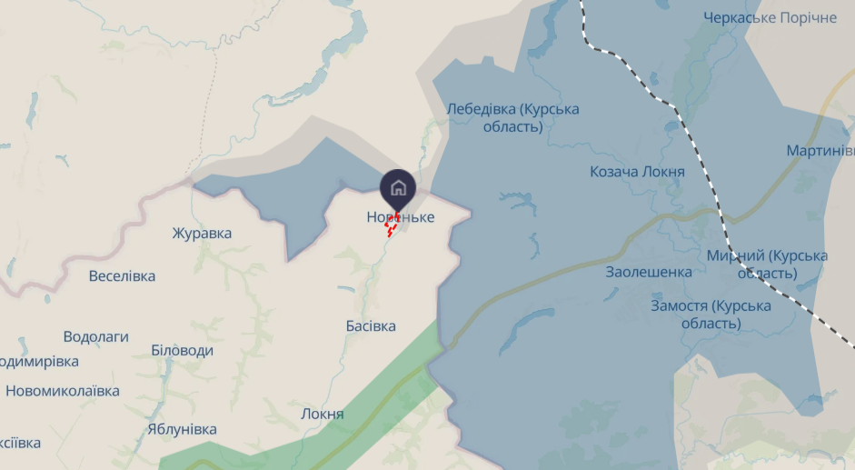 Команда аналітиків DeepState раніше фіксувала просування ЗС РФ у районі Свердликово в Курській області, а район села Новеньке відображався як "сіра" зона.