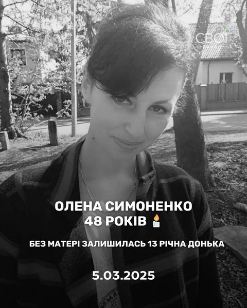 Як пише ТРК "Рудана", внаслідок російської атаки також загинула 48-річна мешканка Кривого Рогу Олена Симоненко. Того дня жінка дочекалась чоловіка з фронту.