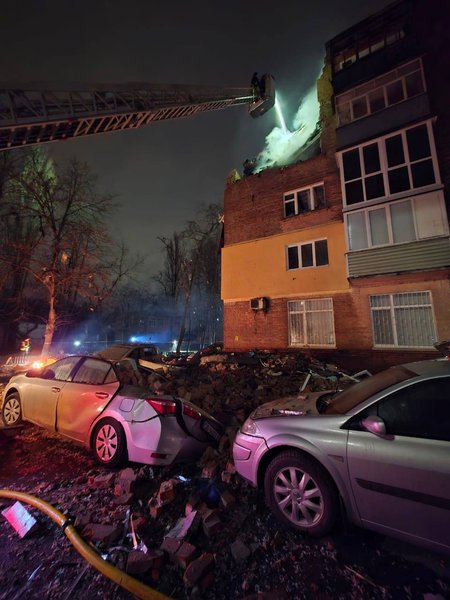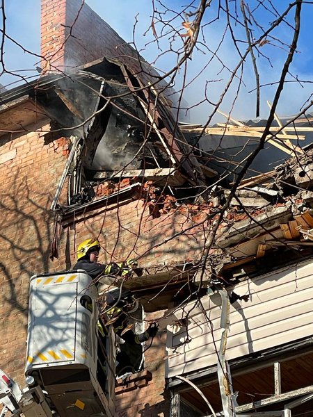 За його інформацію, команда рятувальників розбирає зруйновані конструкції п'ятиповерхівки. Також на місці влучання працюють піротехніки ДСНС.