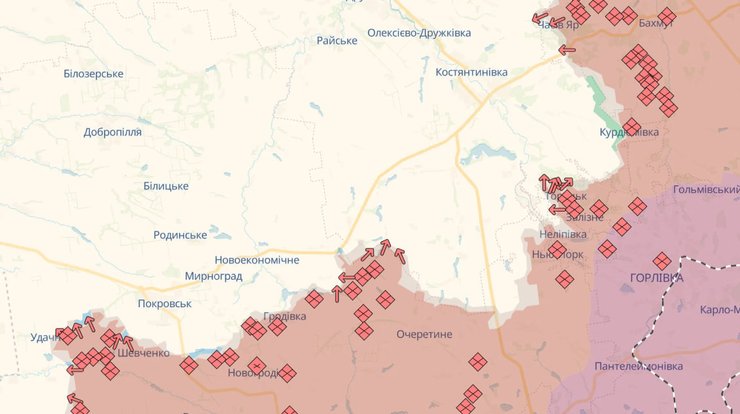 Варто нагадати, що ЗС РФ просуваються в напрямку Торецька. ЗСУ залишили кілька своїх позицій.