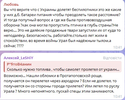 Губернатор Оренбурзької області вже заявив, що сили ППО перехопили і знищили чотири українських БПЛА літакового типу. Передбачається, що метою був військовий аеродром.