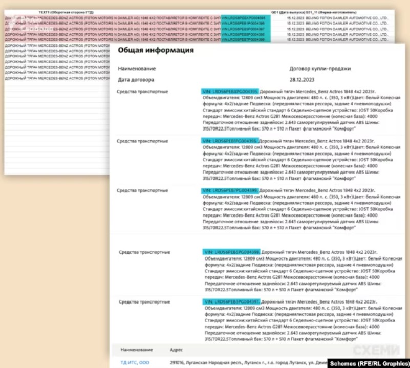 У матеріалі "Схем" вказано, що оборудка стосується вантажівок: відповідно до накладених санкцій, західним компаніям заборонено їх постачати росіянам. Санкції стосувались і німецького концерну Mercedes-Benz. Концерн Mercedes-Benz припинив працював у РФ жовтні 2022 року, через вісім місяців після вторгнення. Перед цим, у вересні, в Китаї урочисто запустили філію німецького концерну — Daimler Truck Holding AG. В підсумку китайський завод, на 90% належний німцям, почав випускати тягачі, які без проблем потрапляли на російську територію, пояснили "Схеми".