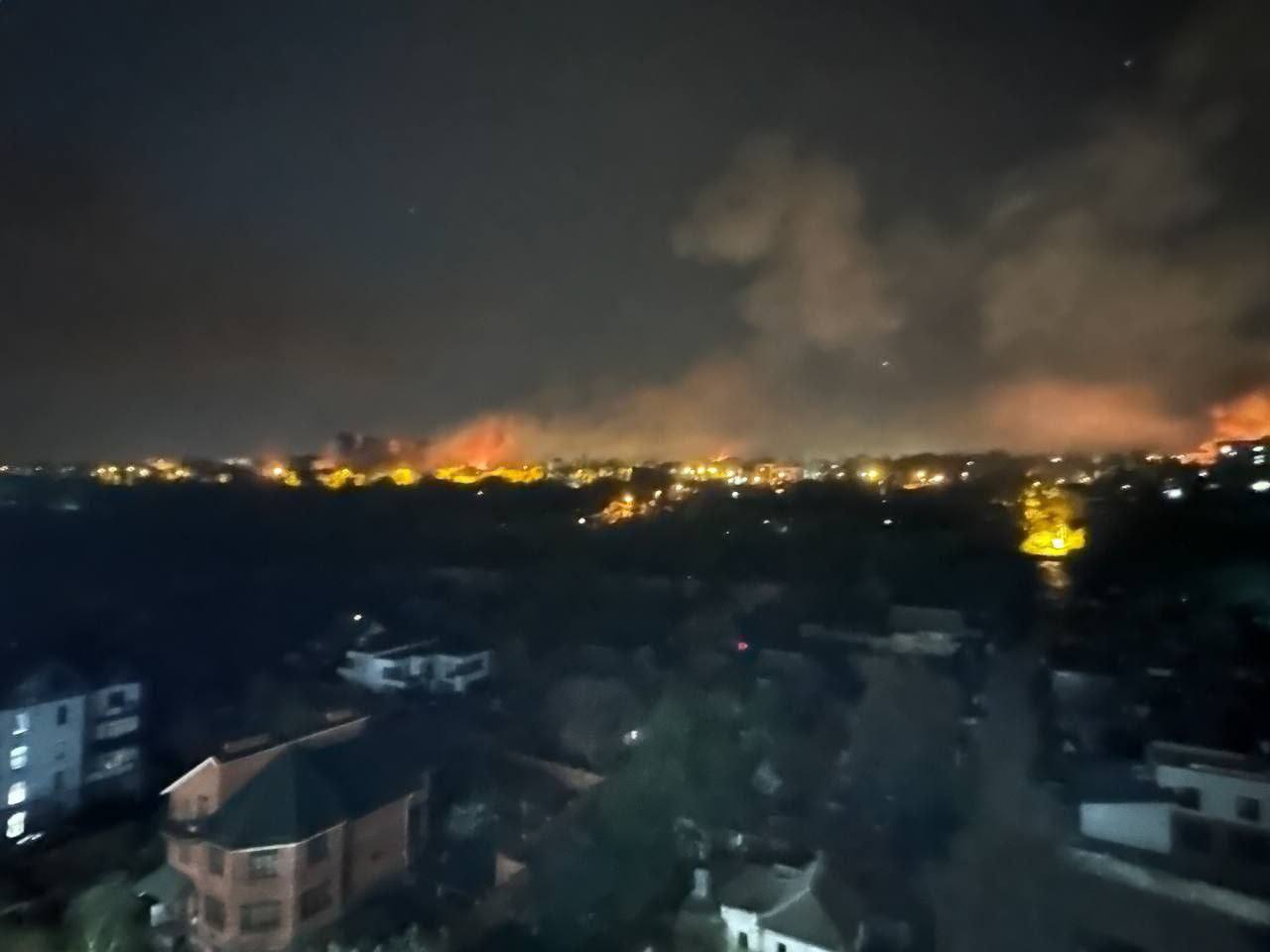 Місцеві жителі розповідають про пожежі — зокрема, палає стоянка автівок. Також зазначається про вибиті вікна.
