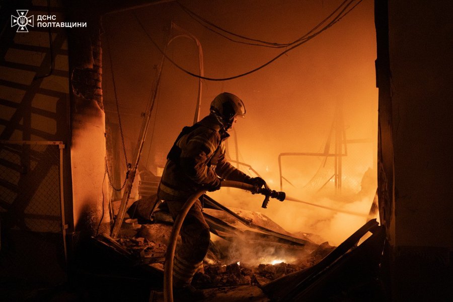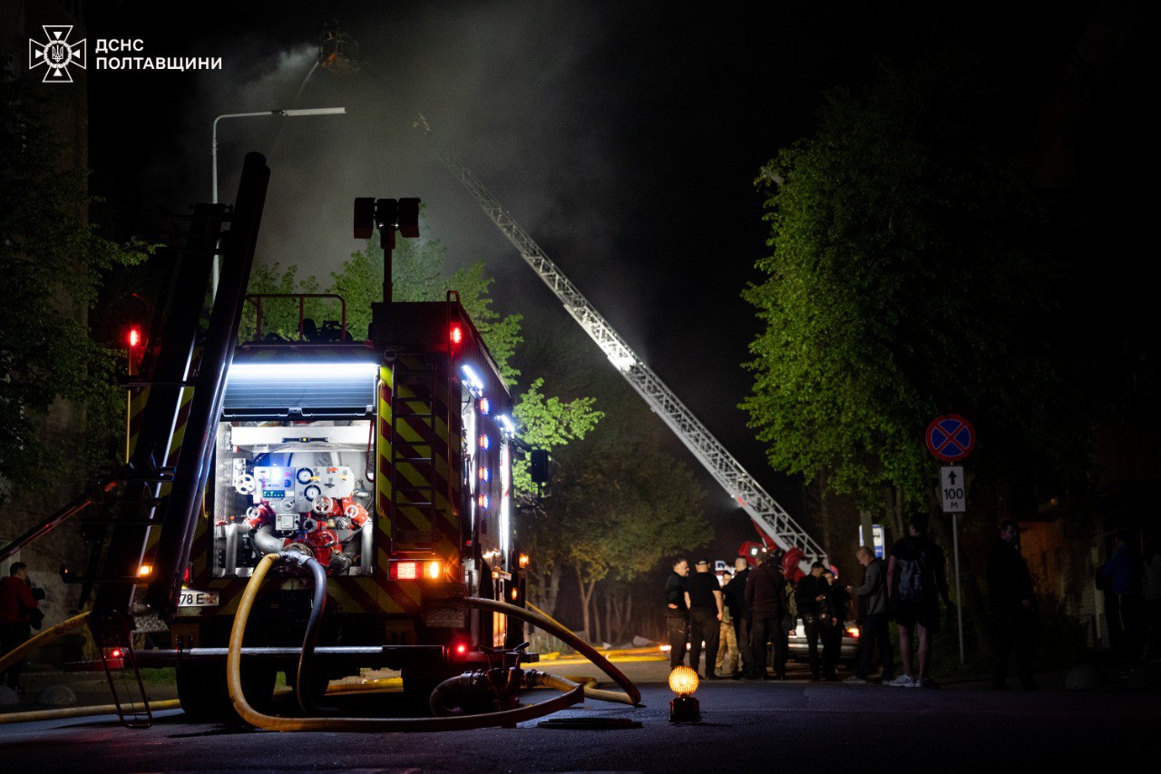 В Державній службі України з надзвичайних ситуацій уточнили, що в результаті масованого російського удару по Полтаві у ніч з 22 на 23 квітня травмовано троє людей. Під ударом опинилась цивільна інфраструктура міста — пошкоджено житлові будинки, підприємства, склади, гаражі, також виникло декілька пожеж. Один із дронів упав поблизу багатоповерхівки — там вибито шибки, пошкоджено фасад.