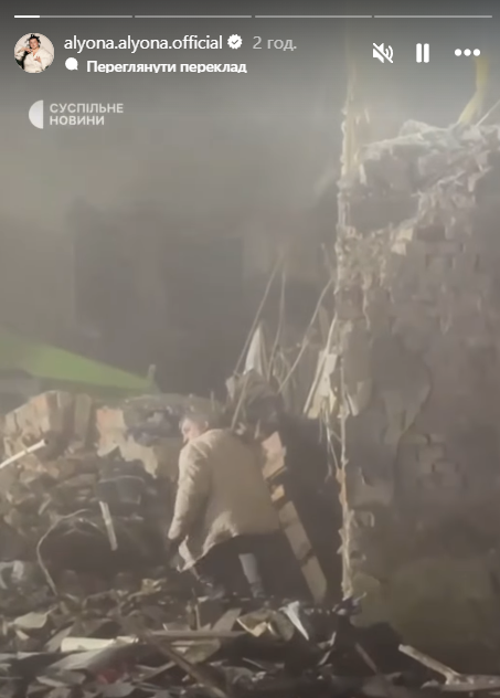 Українська реперка Аlyona Аlyona також відреагувала на атаку. В Instagram вона опублікувала декілька stories з відео з місця події.