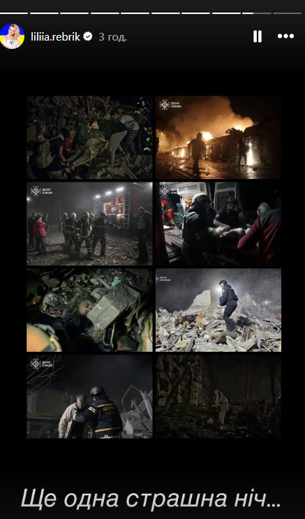 Українська ведуча та акторка Лілія Ребрик розповіла про "ще одну страшну ніч". Відповідну stories можна побачити в її Instagram.