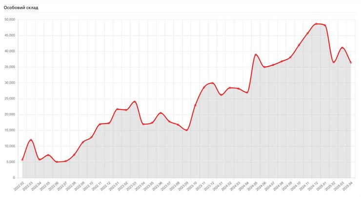 За даними аналітиків у квітні 2025 року окупанти втратили 36 420 особового складу, серед якого як загиблі, так і поранені.