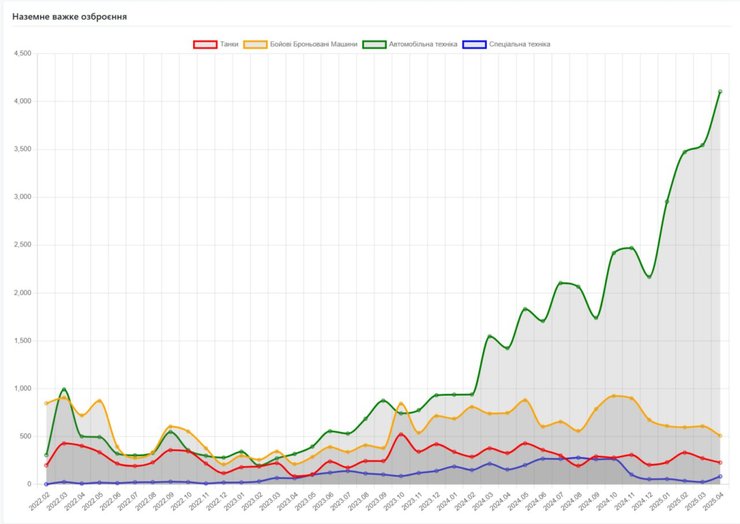 - автомобільна техніка — 4104 (найбільший показник з початку повномасштабного вторгнення)