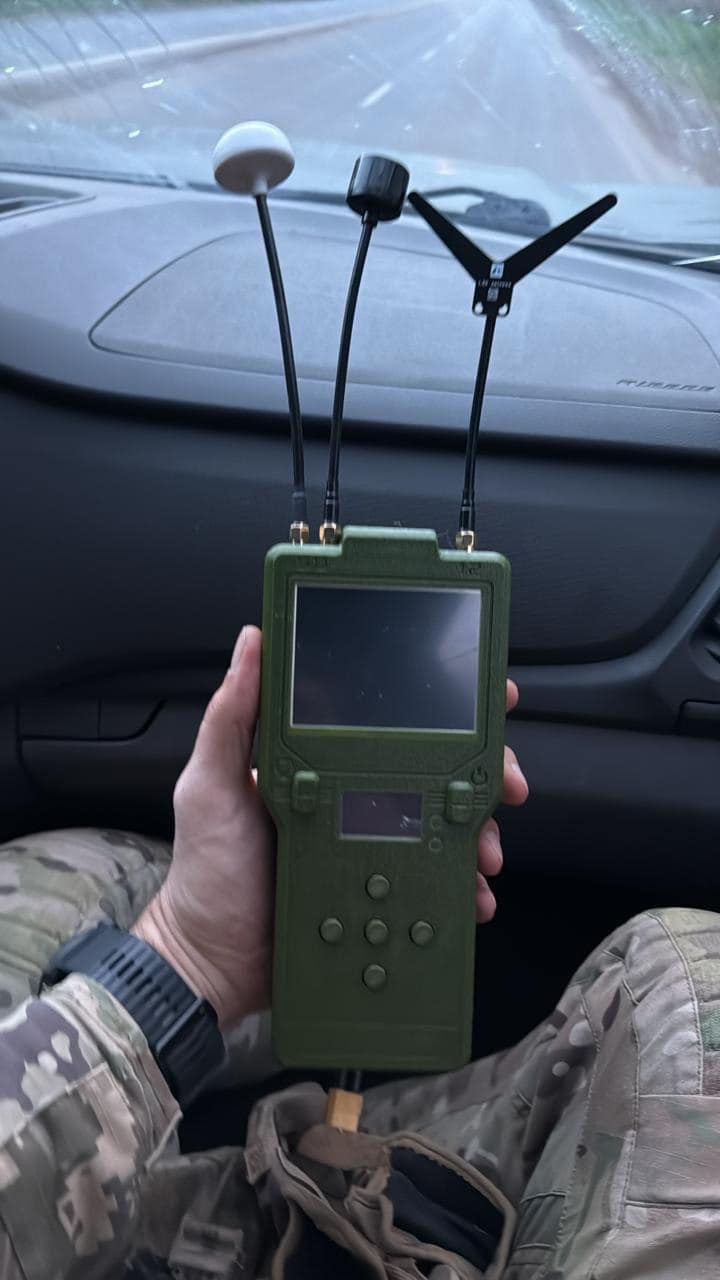 Військовий додав фото українського детектора дронів "Дзиґа". Бачимо, що автор фото саме перебував у машині та, ймовірно, намагався виявити російські безпілотники. При цьому екран детектора "мертвий" і не показує ніякої інформації.