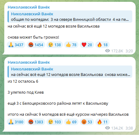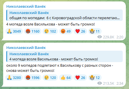 Місто упродовж кількох годин перебувало під масованою атакою дронів. Моніторинговий канал "Николаевский Ванек" попереджав про рух ударних БпЛА з кількох різних напрямків у різний час.