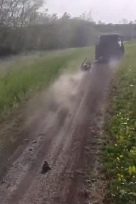 З контексту зрозуміло, що покараного звинуватили у тому, що він кинув "товаришів" і ті, ймовірно загинули. За це його прив'язали за ноги до автомобіля та тягали по полю близько однієї хвилини.