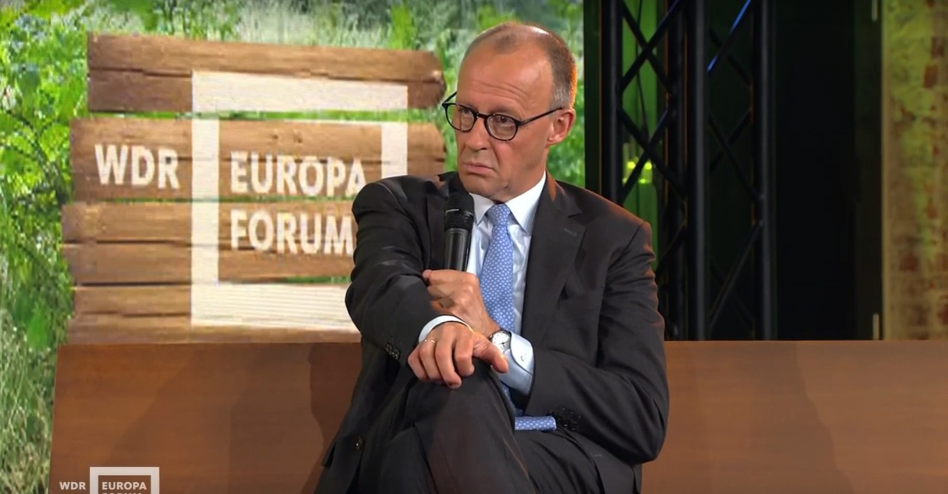 Трансляція Forum Europe відбувається на порталі WDR. Приблизно на 40-й хвилині заходу на сцені з'явився Мерц та поговорив з двома журналістами, свідчать кадри з порталу.