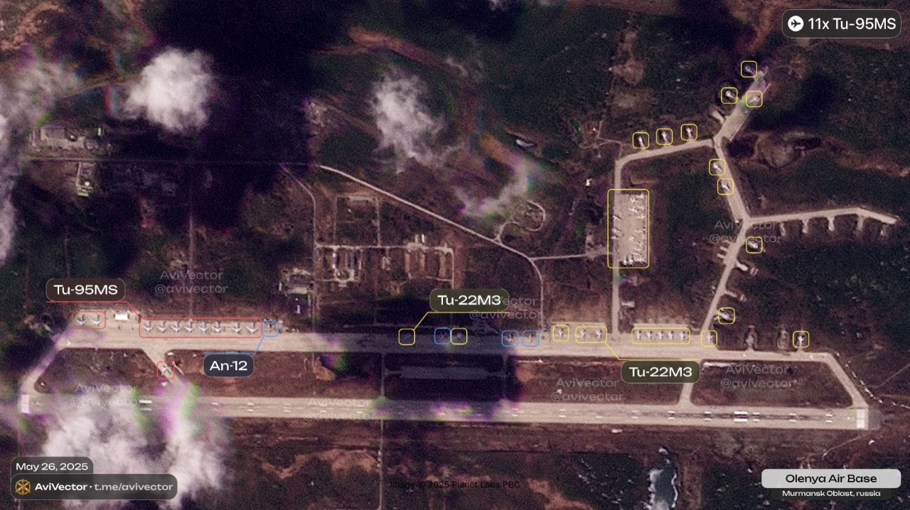 Крім того, на "Оленьї" також було зафіксовано 11 стратегічних бомбардувальників Ту-95МС, однак у ракетному ударі 26 травня брали участь лише троє з них. Це може свідчити про обмежену реальну боєготовність навіть тих літаків, які фізично присутні на аеродромах.