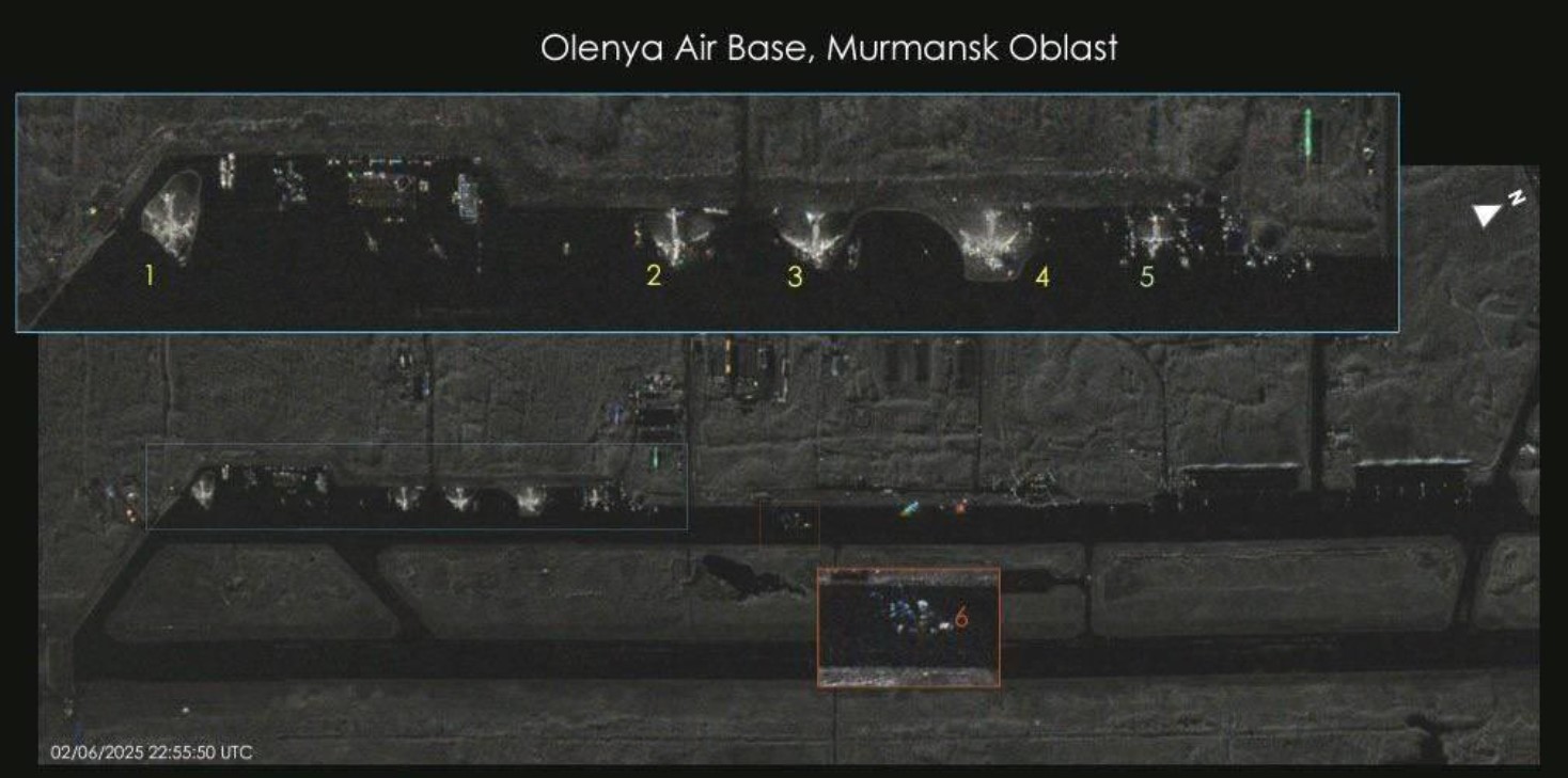 Додаткові супутникові зображення і дані SAR-зйомки підтверджують, що на авіабазі "Оленья" в Мурманській області було знищено ще чотири стратегічні бомбардувальники Ту-95 і один транспортний літак Ан-12, який не належить до категорії стратегічної авіації.