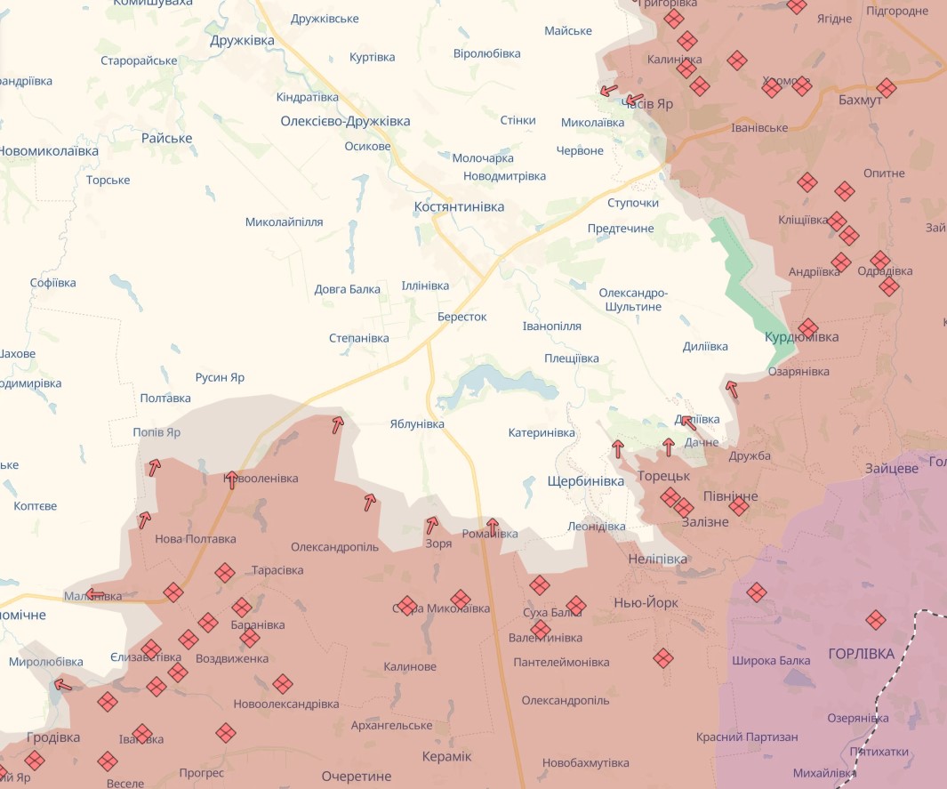 Згідно з картографічними даними противник мав незначний успіх на південний захід від Яблунівки та просувався вздовж дороги Т-0504, яка з'єднує Покровськ і Костянтинівку.