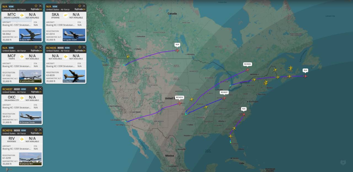 Безпрецедентні авіаманеври літаків KC-135 і KC-46 з американських військових баз через Атлантику помічені 15 і 16 червня. Загалом вилетіло понад 30 машин, повідомляє видання Military Watch.