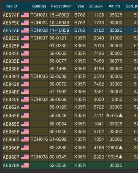 Моніторингові канали помітили виліт понад 30 літаків ВПС США | Фото: the war zone