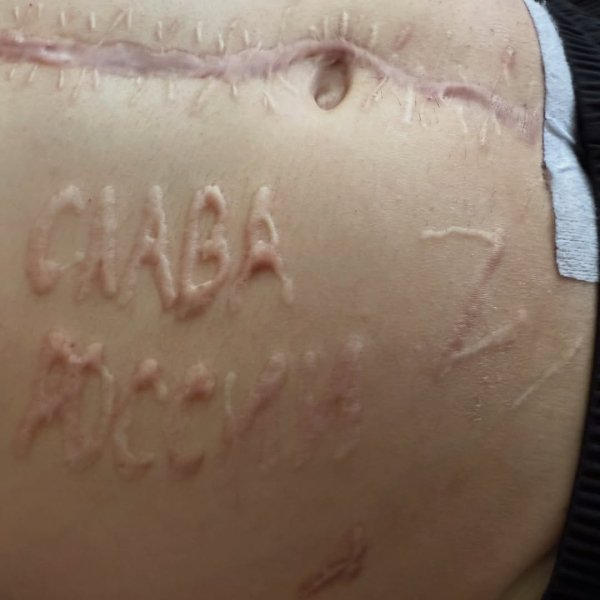 Лікарі 15 червня почали видаляти напис "Слава Росії" з тіла військового, що повернувся додому під час обміну полоненими. Шрами залишилися на його тілі після проведення операції російськими хірургами.