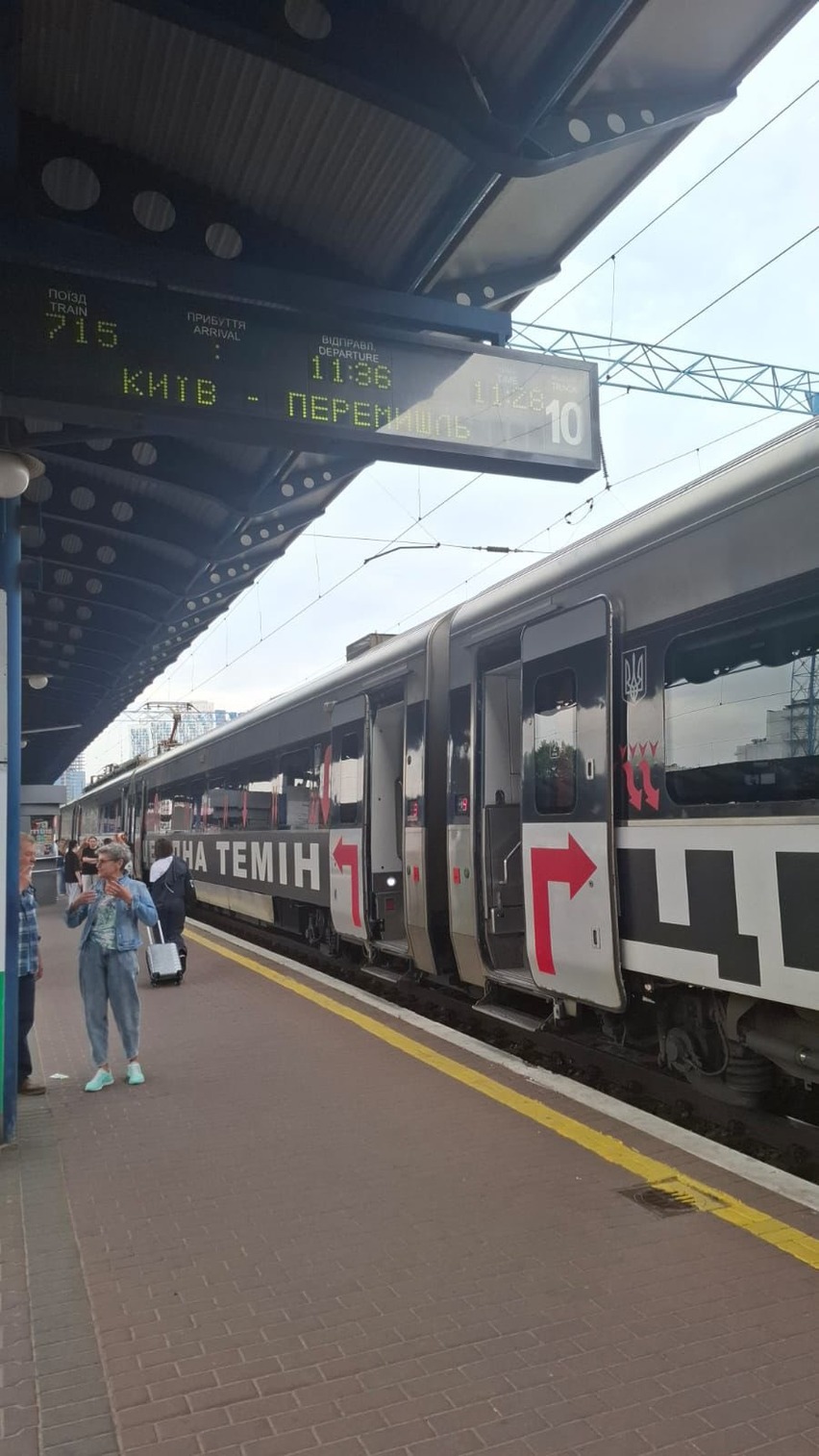 Пресслужба ПАТ "Укрзалізниця" повідомляє у Facebook, що потяг під час нічного обстрілу перебував на пункті базування. Розбиті вікна оперативно замінили, та об 11:36 поїзд уже рушив за графіком з Києва до польського Перемишля.