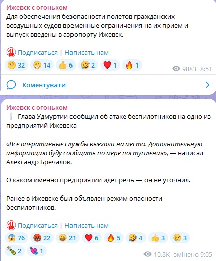 Після цього можливість коментувати в Telegram-каналах Іжевська стали закривати, а коментарі видаляти.