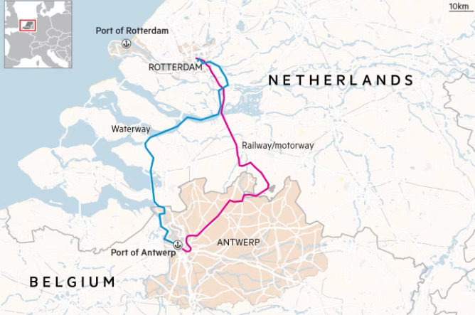 Роттердам має досвід приймання озброєнь, під час війни в Перській затоці 2003 року, але навіть у розпал холодної війни там не було спеціального причалу. В Антверпен регулярно відправляють вантажі для американських військ у Європі.