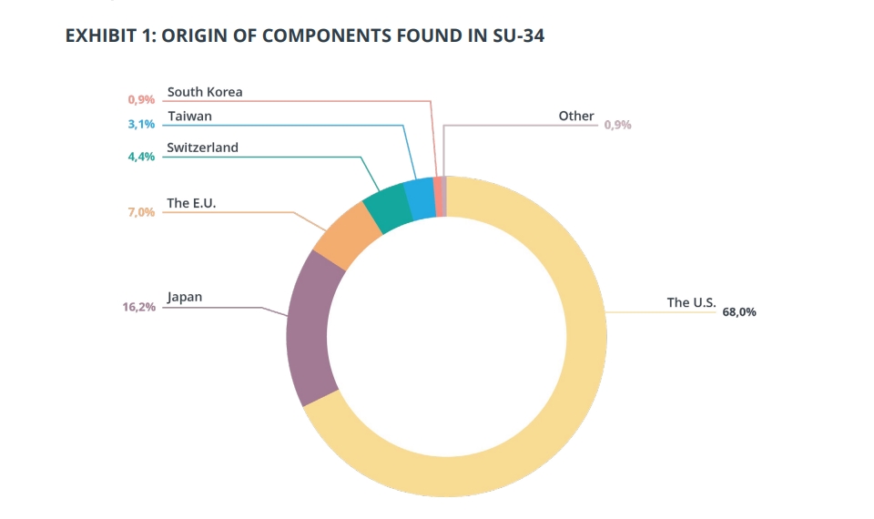 За даними звіту, структура походження електронної начинки в Су-34 виглядає наступним чином:
