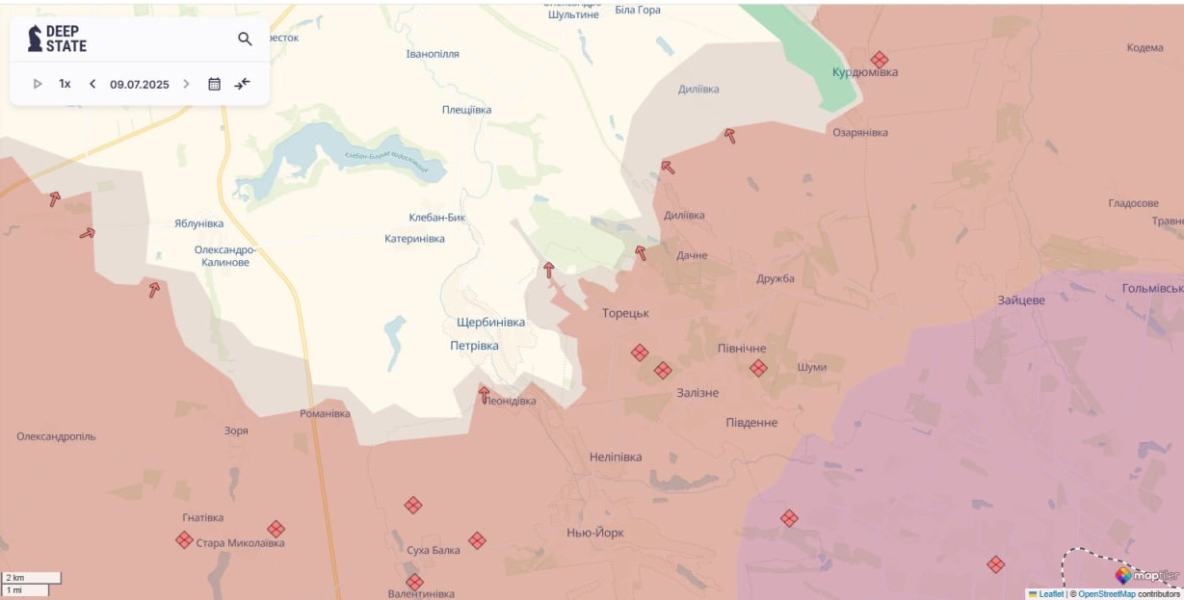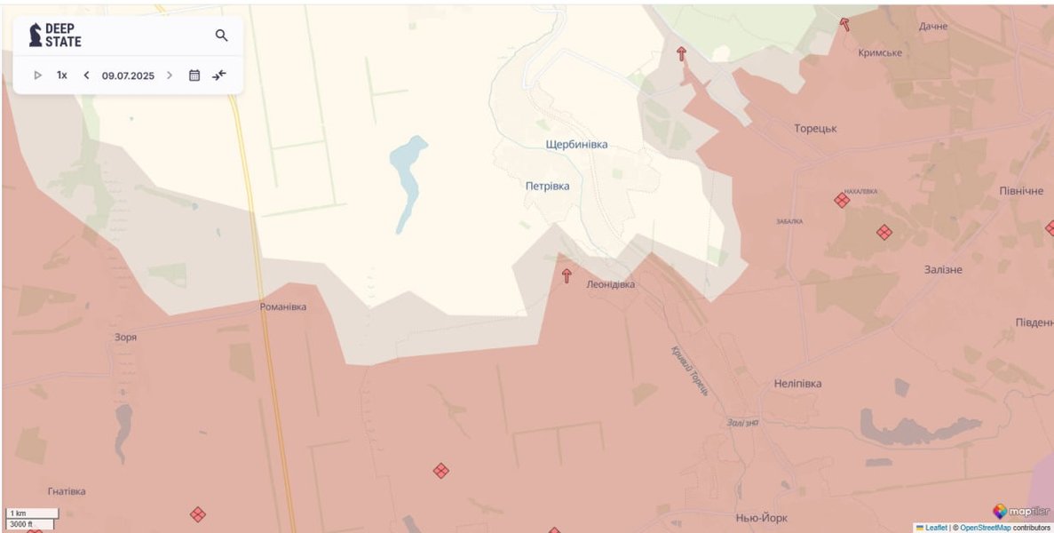 "Ворог просунувся у Мирному, Торецьку, Леонідівці, біля Борівської Андріївки та Зеленого Гаю", — йдеться в повідомленні.