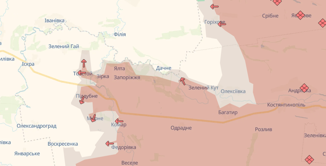 Наступ ЗС РФ: захоплено селище Ялта на кордоні Дніпропетровської області, — DeepState (карти)