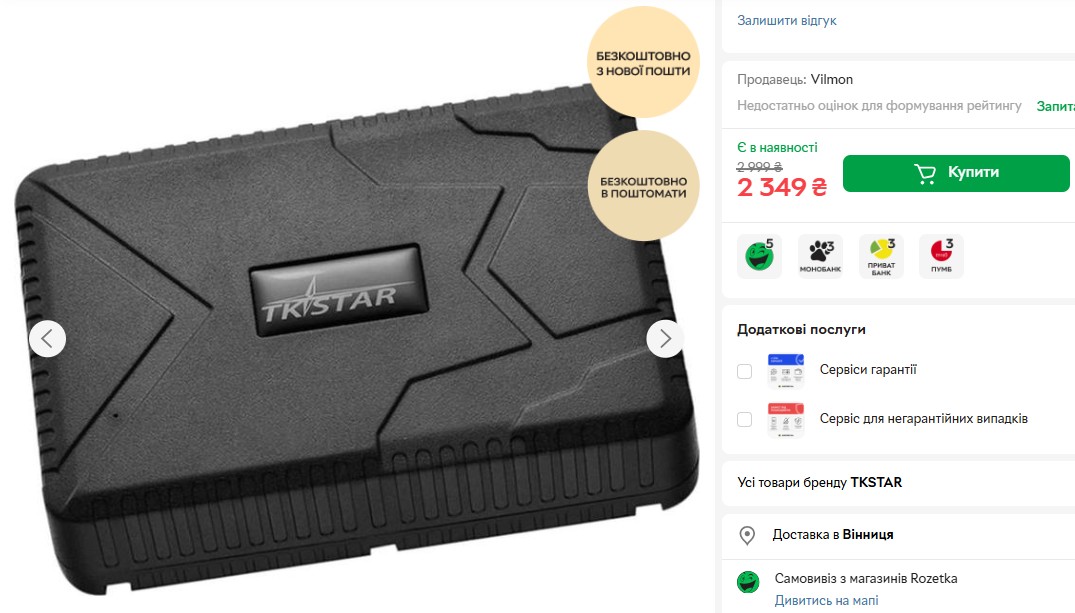 Пошук у мережі показує, що в Україні можна вільно купити GPS-трекер TkStar. Орієнтовна вартість — близько 2-3 тис. грн. У описі продукту вказано, що він без підзарядки може працювати 120 год, точність — до 5 м, може передавати координати кожні п'ять секунд. Також вказано, що у спеціальному застосунку можна побачити всю історію переміщень.