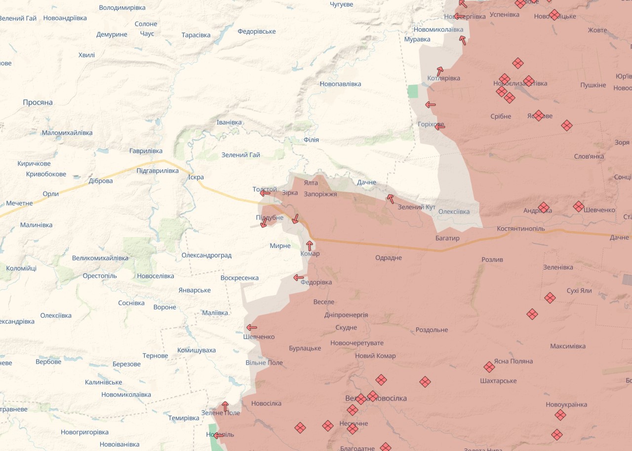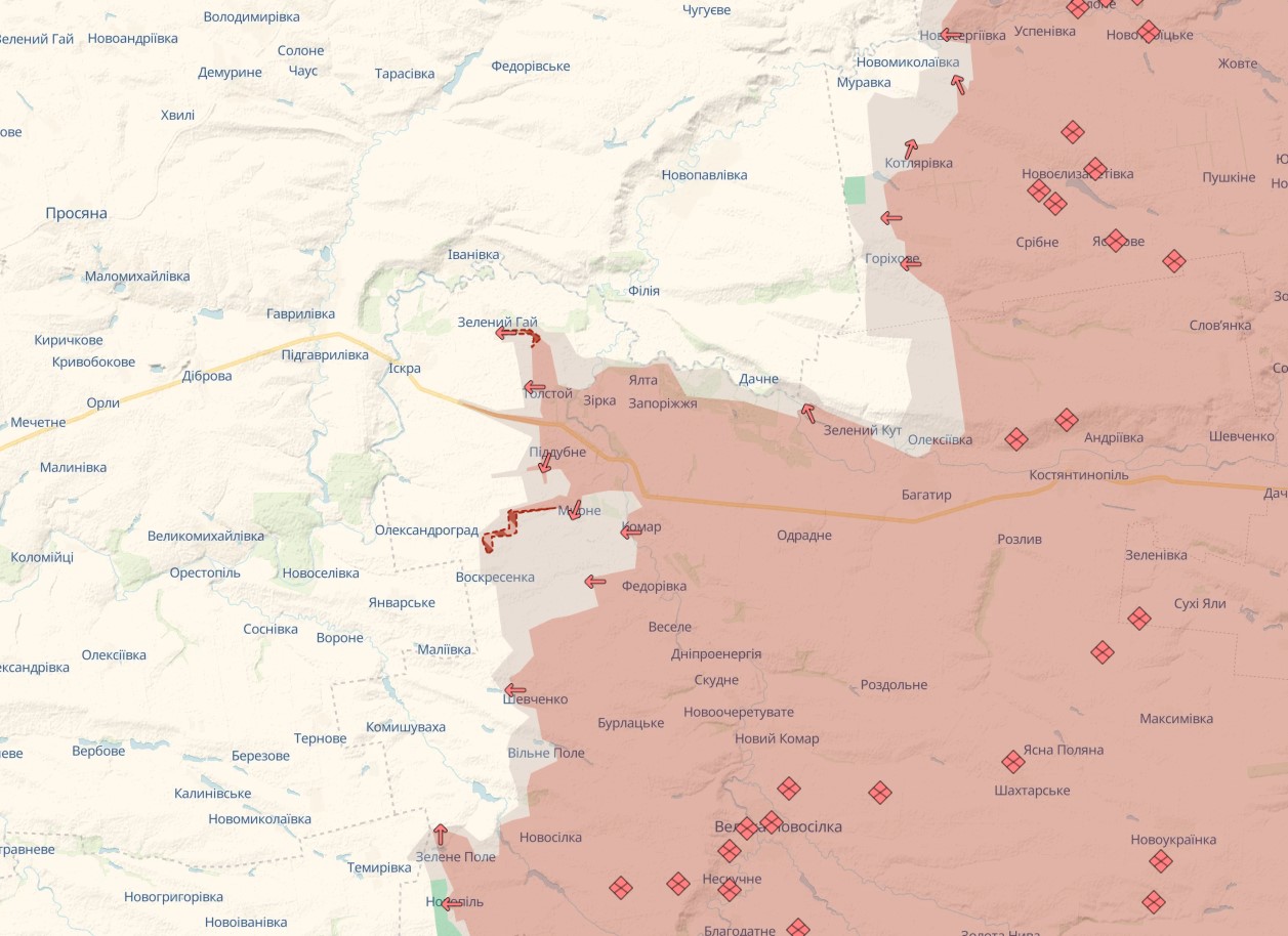 За минулу добу лінія бойового зіткнення на Новопавлівському напрямку знову змінилася. Збройні сили РФ просунулися в районі населених пунктів Воскресенка, Зелений Гай, а також у Яблунівці, недалеко від кордонів Дніпропетровської області.