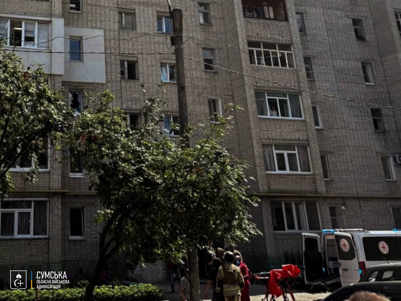 Начальник Сумської ОВА Олег Григоров розповів, що пошкоджено також вікна багатоповерхівок та дитячий майданчик. Попередньо, двоє людей дістали поранення. Їх госпіталізували.