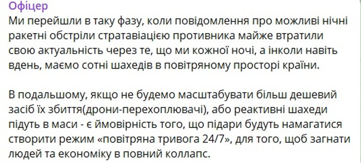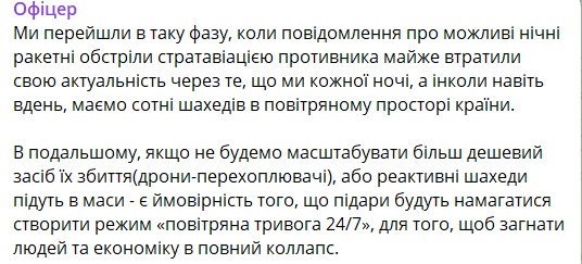 Захисник констатує той факт, що ми вже в тій фазі, що повідомлення про можливі нічні ракетні обстріли стратегічною авіацією противника майже втратили свою актуальність.