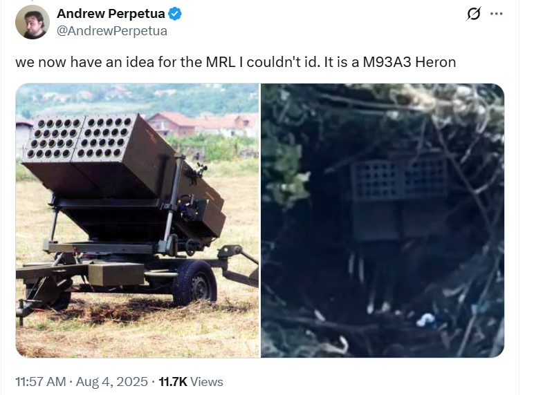 Сили оборони почали використовувати рідкісну хорватську реактивну систему залпового вогню M93A3 HERON, раніше не зафіксовану серед постачань західного озброєння. Перше візуальне підтвердження з'явилося в російському відео, на якому зафіксовано удар по цій системі.