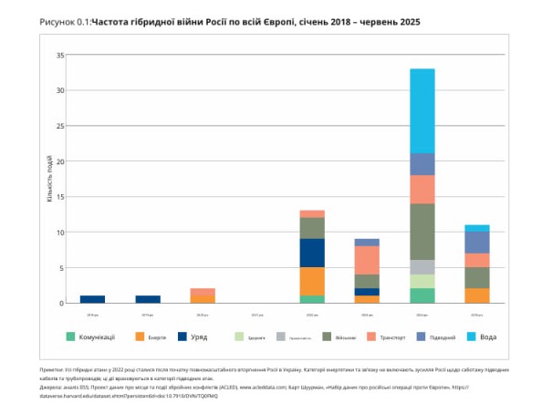 Частота гібридної війни Росії по всій Європі, січень 2018 – червень 2025