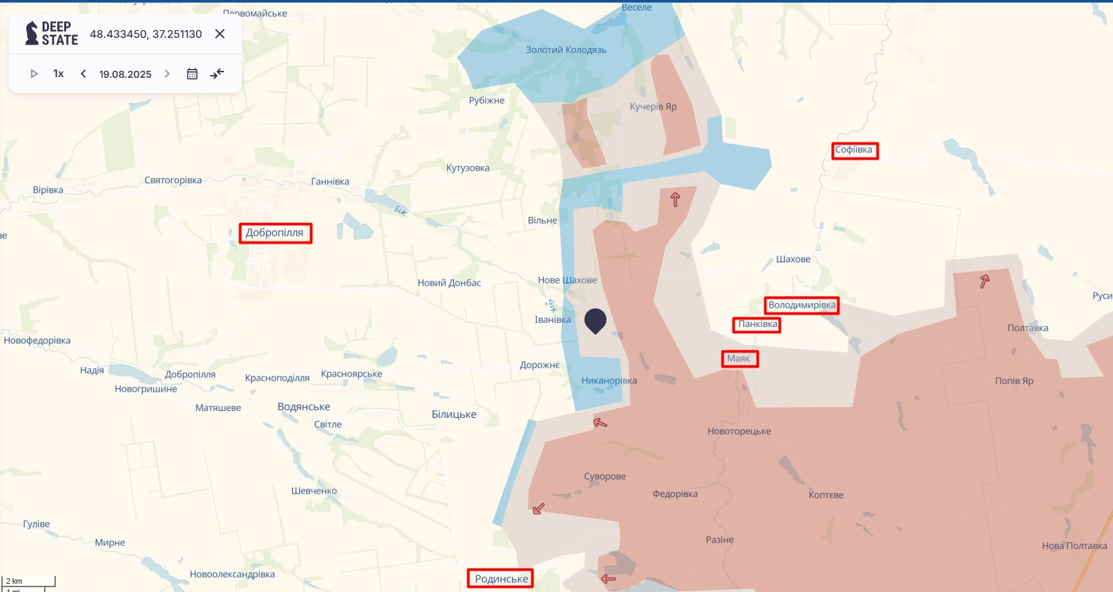 На Покровсько-Добропільському напрямку Сили оборони мають успіхи в районі селища Родинське. Їм вдалося відсунути противника у бік терикону. Про це в своєму телеграм-каналі 20 серпня повідомив боєць Сил оборони з позивним "Мучной".