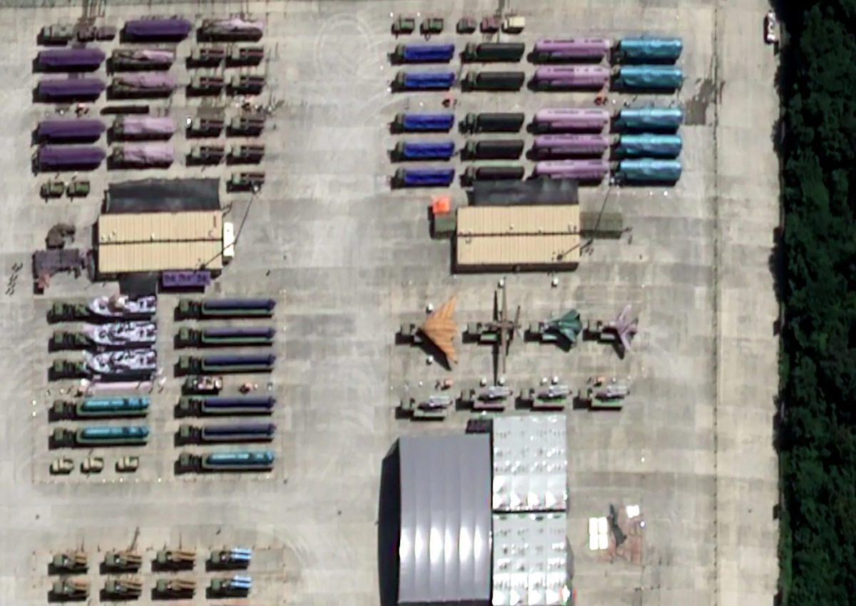 На знімках, зроблених із супутника Airbus, зображено бронетехніку, системи ППО, артилерійські снаряди, включно з ракетними пусковими установками, і крилаті ракети, повідомляє Bloomberg.