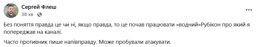 "Без поняття правда це чи ні, якщо правда, то це почав працювати "водний"Рубікон про який я попереджав на каналі", — написав Бескрестнов.