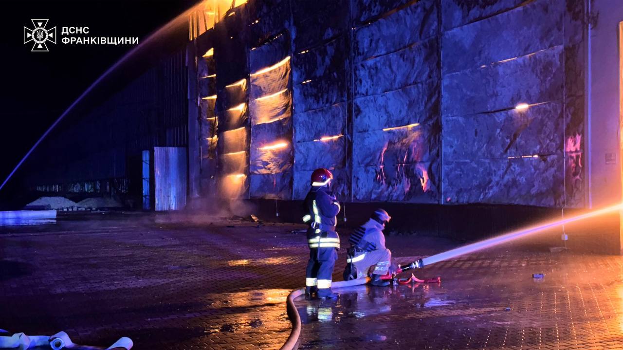 У Івано-Франківській області внаслідок удару РФ почалась пожежа у трьох осередках, заявили в ДСНС. Вогонь охопив 9 тис. кв. м: працює 130 пожежників та 35 одиниць спецтехніки. Який саме об'єкт палає, служба не уточнила.