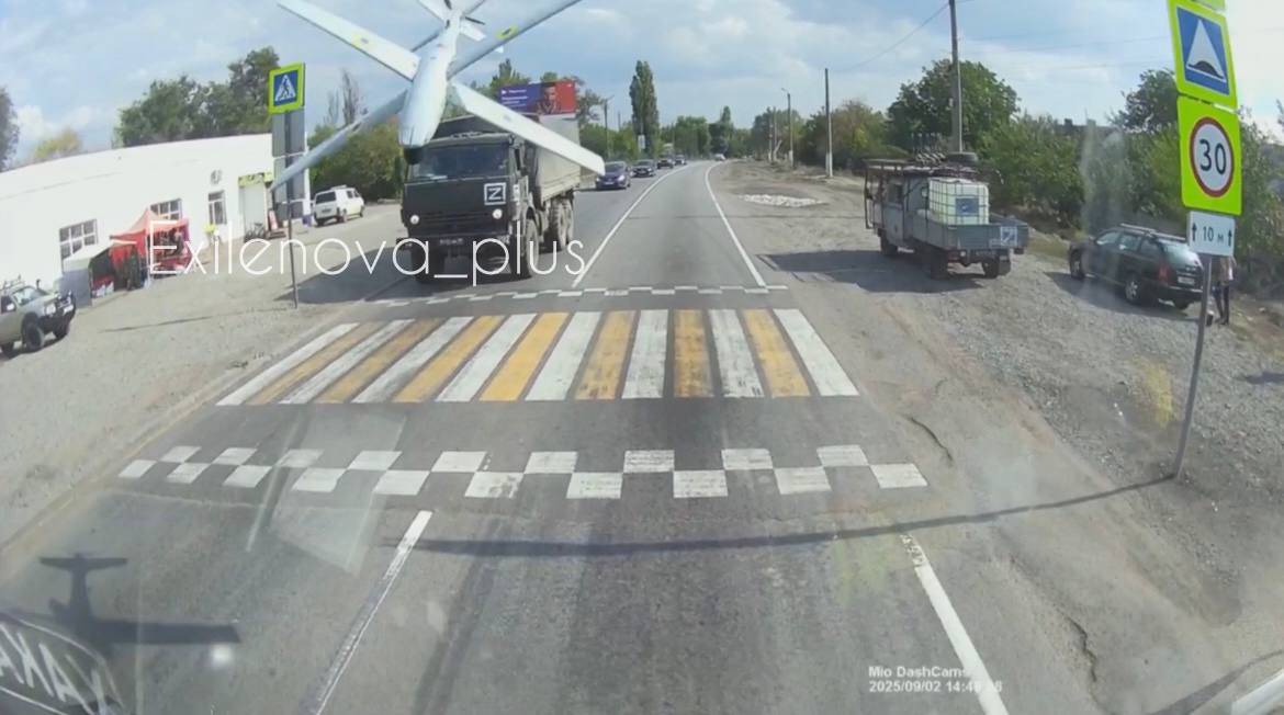 В окупованій Кадіївці на Донеччині український дрон Ram-2x просто посеред дня зробив наліт на вантажівку ЗС РФ. В результаті ворожу техніку було знищено. Момент зафільмувала камера відеореєстратора військового автомобіля ЗС РФ, повідомляє телеграм-канал Exilenova+.