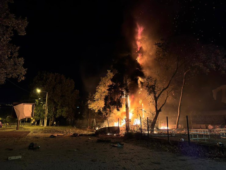 У Кривому Розі через удари ракетами та БпЛА сталося декілька займань. У місті пошкоджені підприємство, адмінбудівля, гараж, приватний будинок, авто.