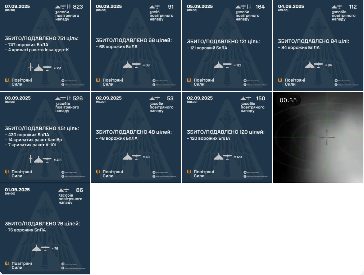 Дані щодо повітряної атаки на Україну 7 вересня 2025 року